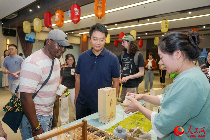 調研團成員觀看制作中藥香囊。人民網 王星攝