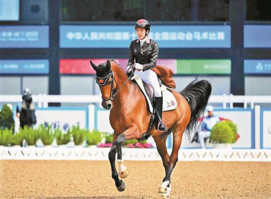十五運馬術項目盛裝舞步團體賽冠軍上海隊饒嘉怡。 受訪單位供圖
