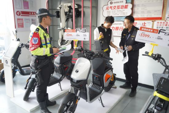 為常態化規范電動車銷售市場秩序,光明交警與市場監管部門協同聯動,定期開展電動自行車銷售門店專項聯合檢查。