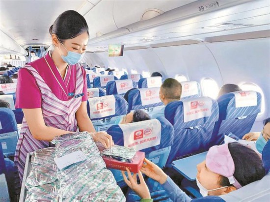 进入7月以来,深圳宝安国际机场航班的日均起降架次在950架次左右。图为南航恢复国内航班机上热食餐饮服务。 深圳特区报记者 刘羽洁 通讯员 陈戴维 摄