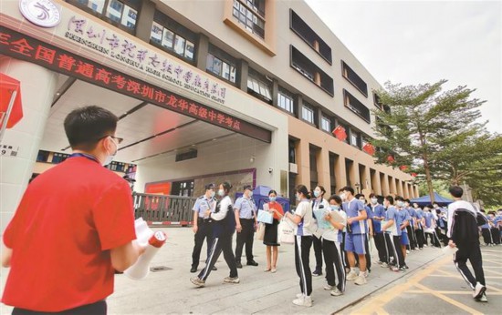 为确保深圳市高考顺利实施,各区各职能部门以最高标准、最严要求、最强保障为高考保驾护航,各级教育、宣传、保密、环保、交通、卫生、市场监管、公安、水务、城管、气象、轨道办、信息、无线电管理、供电、通信、消防等部门按照专项保障方案,全力为考生提供最优质服务,保证考试安全和公平公正。(记者 包力)