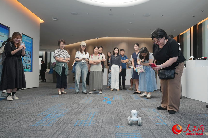 在全球服务中心,智能宠物机器狗吸引调研团关注。人民网 刘森君摄