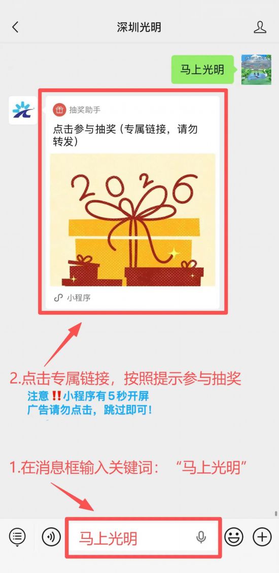 3.在公众号后台回复关键词“马上光明”可获取抽奖链接,按照提示上传“点赞+推荐”截图即可参与抽奖。
